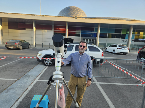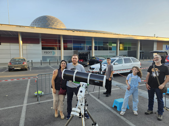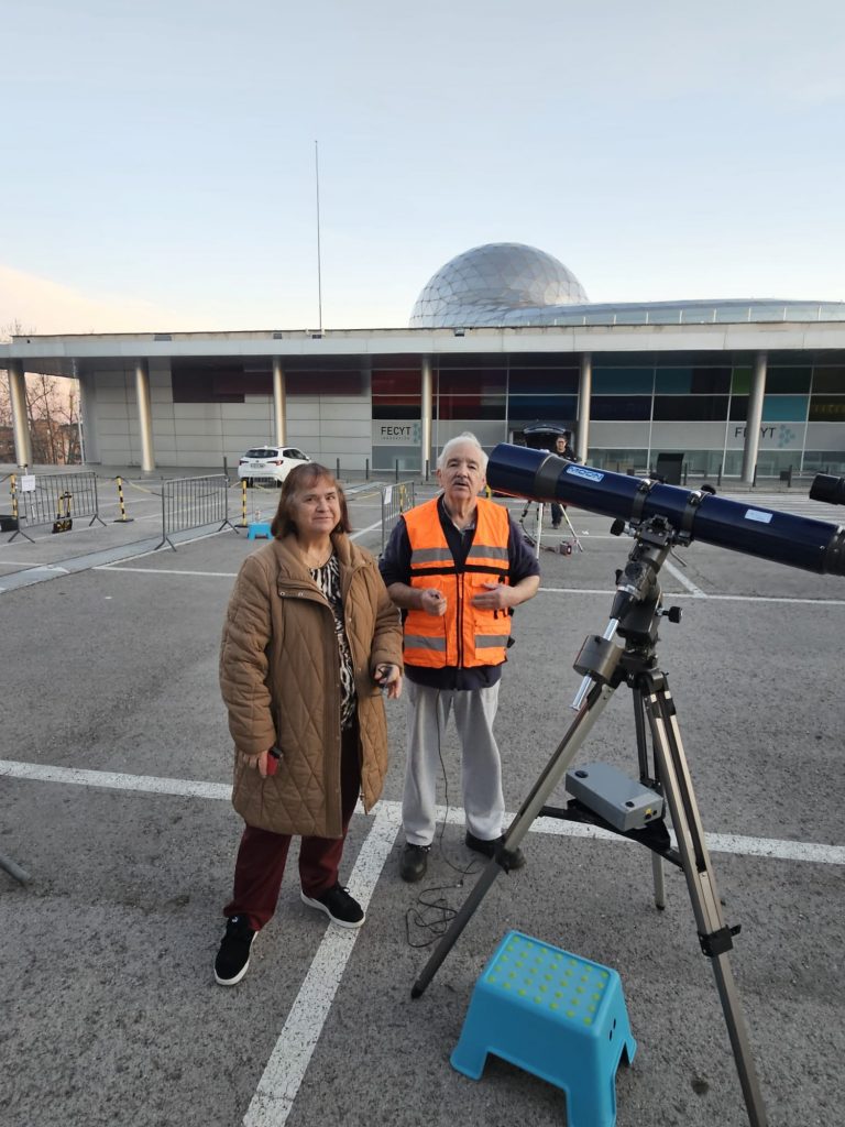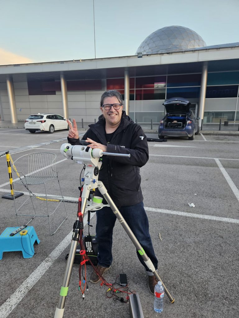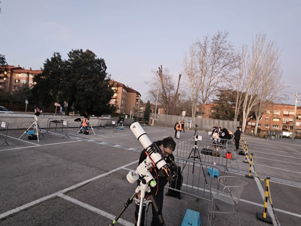 Otro año más realizamos en el Museo Nacional de Ciencia y Tecnología (MUNCyT) de Alcobendas la actividad promovida por la NASA para observar nuestro satélite natural, el InOMN 2025 (International Observe the Moon Night 2025). Para ello pusimos a disposición de todos los asistentes un total de 12 telescopios. Este año el evento fue especialmente multitudinario, casi del doble de personas que años anteriores, unos 750 asistentes aproximadamente.
