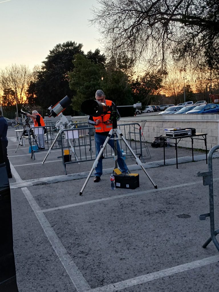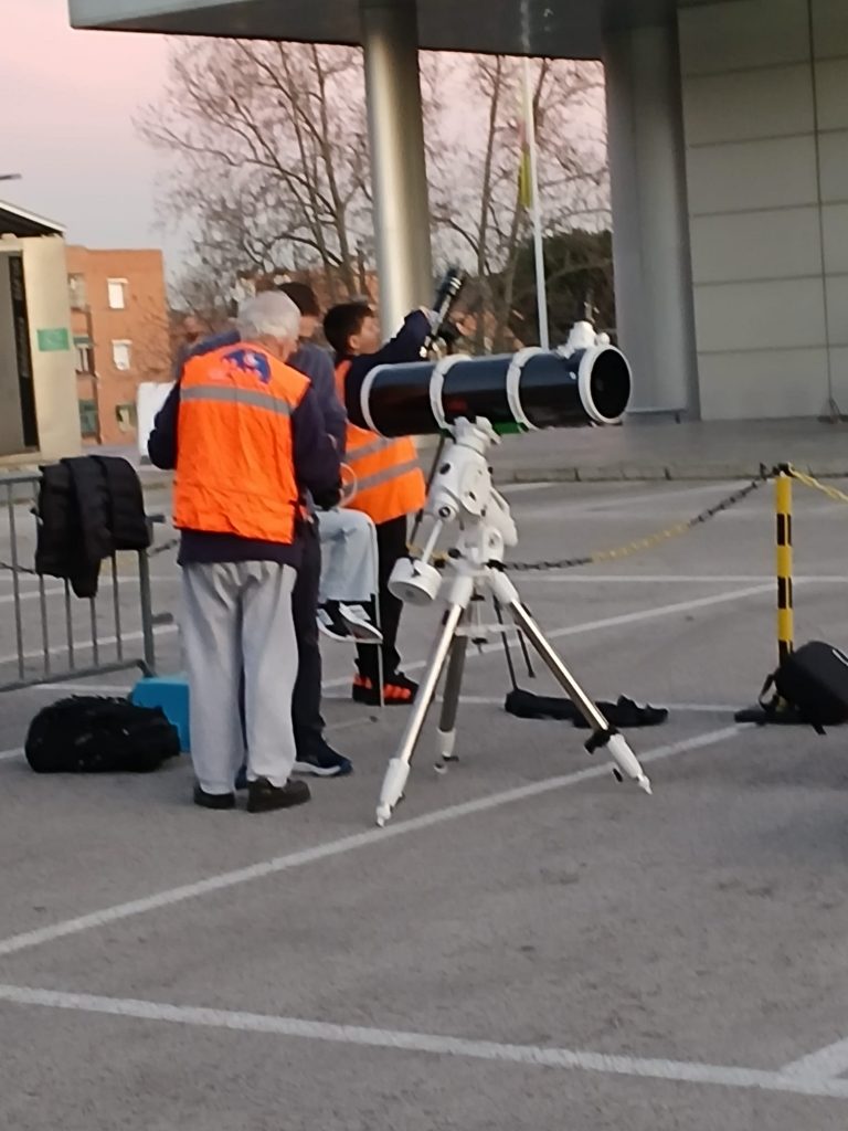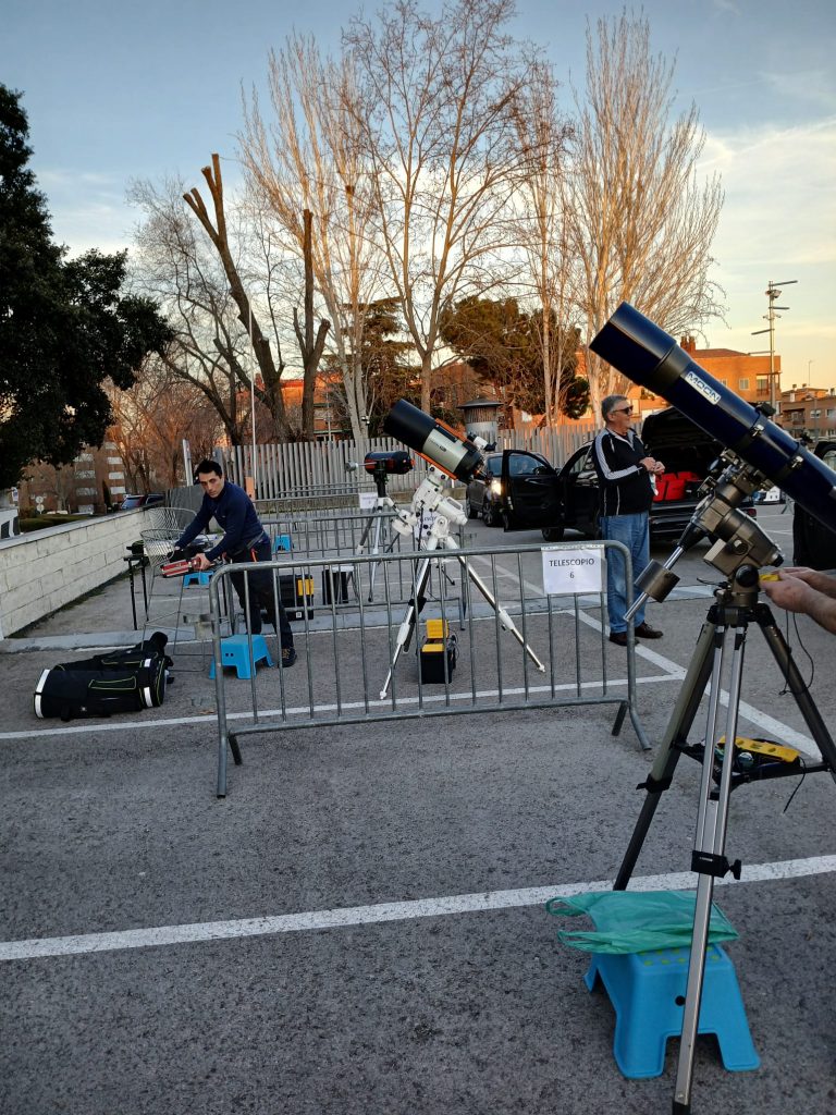 Realizamos una observación pública desde el Museo Nacional de Ciencia y Tecnología de Alcobendas, donde contamos con 8 telescopios, para observar Júpiter después de su oposición, y una fina luna creciente. Los primeros turnos tuvieron la suerte también de poder disfrutar de los anillos de Saturno. Además pudimos observar las Pléyades, el cúmulo de estrellas mas famoso y brillante del cielo, y las estrellas Sirio, Rigel y Betelgeuse. También se pudo ver la Nebulosa de Orión. Una actividad para todos los públicos donde todos pudieron disfrutar de la astronomía.