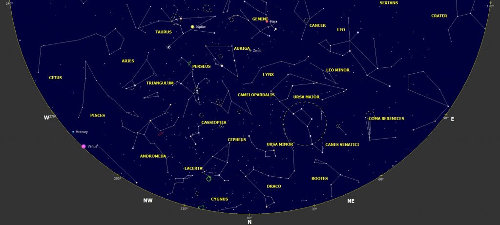 Comienza la temporada de galaxias primaverales, visibles cada vez en mejores condiciones. Comienzan a estar en todo su esplendor cúmulos como los de Leo, Osa Mayor y en la segunda parte de la noche, Virgo y Coma.