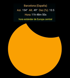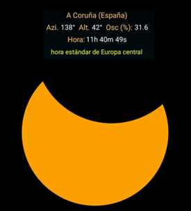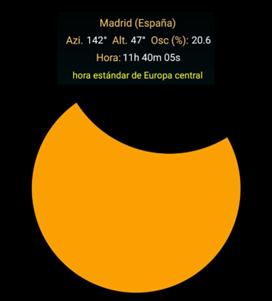 Sin embargo, este eclipse parcial será visible en gran parte de Europa, incluido España, donde será visible en todo el territorio incluso en las Islas Canarias. El mejor punto de España para ver este fenómeno será en Galicia, ya que llegará a ocultarse un hasta un 31% del disco solar, dependiendo de la ubicación. El peor sitio serán las Islas Baleares donde solo se ocultará el 10% y la costa Mediterránea como un 13%.