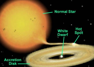 Las variables cataclismicas (CV) son estrellas binarias en el que una de las componentes, estrella enana roja, o de otra estrella de la secuencia principal , transfiere masa a la otra componente(enana blanca). las estrellas ocasionalmente tienen violentas explosiones (Outburst) causadas por procesos en la estructura termonuclear de la estrella. Los periodos orbitales suelen ser aproximadamente de 0.6 dias (14 hr) a 0.06 dias (90 min). La razón por la fascinación de las variables cataclismiscas es que tienen una variedad de comportamiento en todas las longitudes de onda y en una amplia gama en la escala de tiempo.
